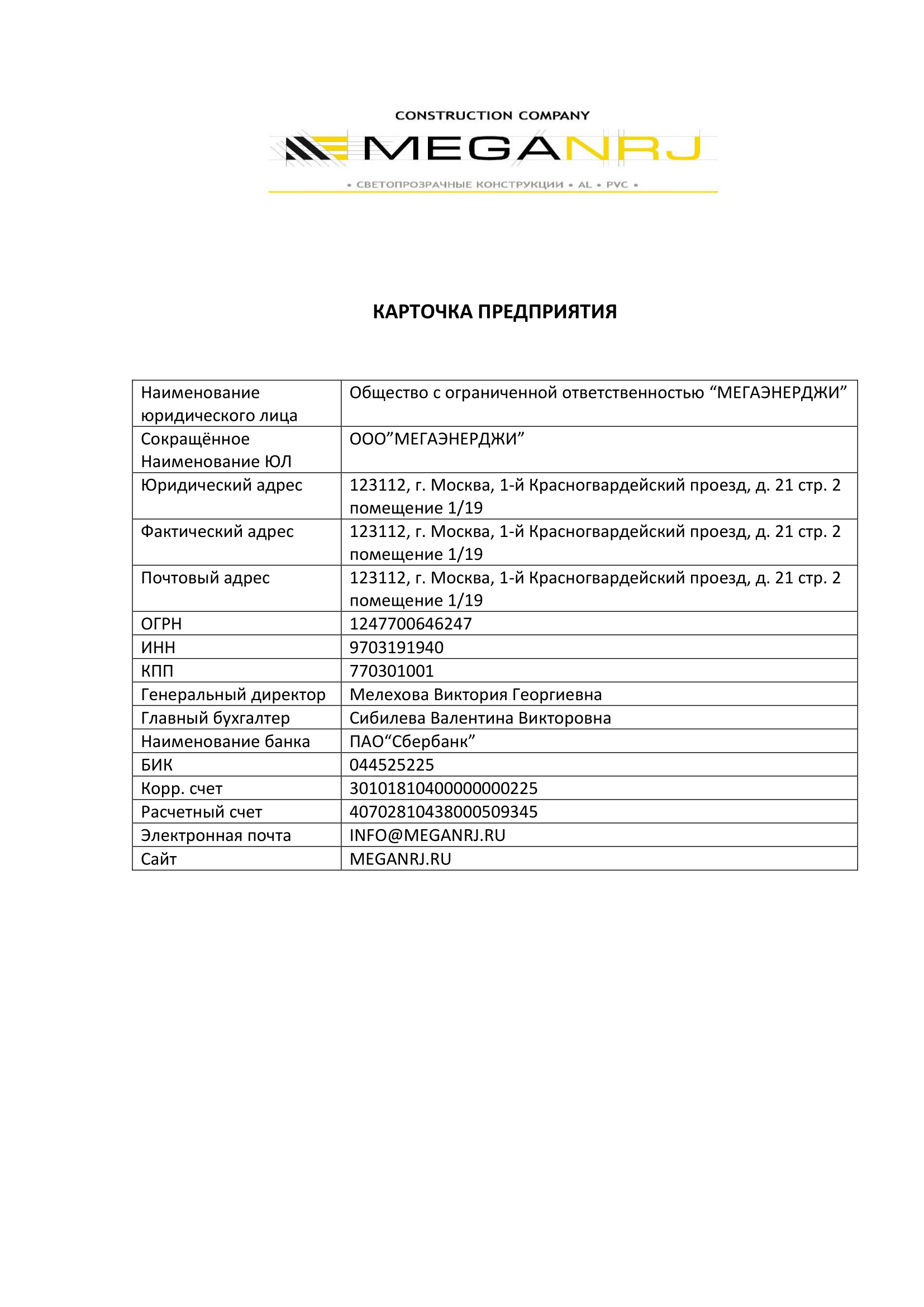 Карточка предприятия